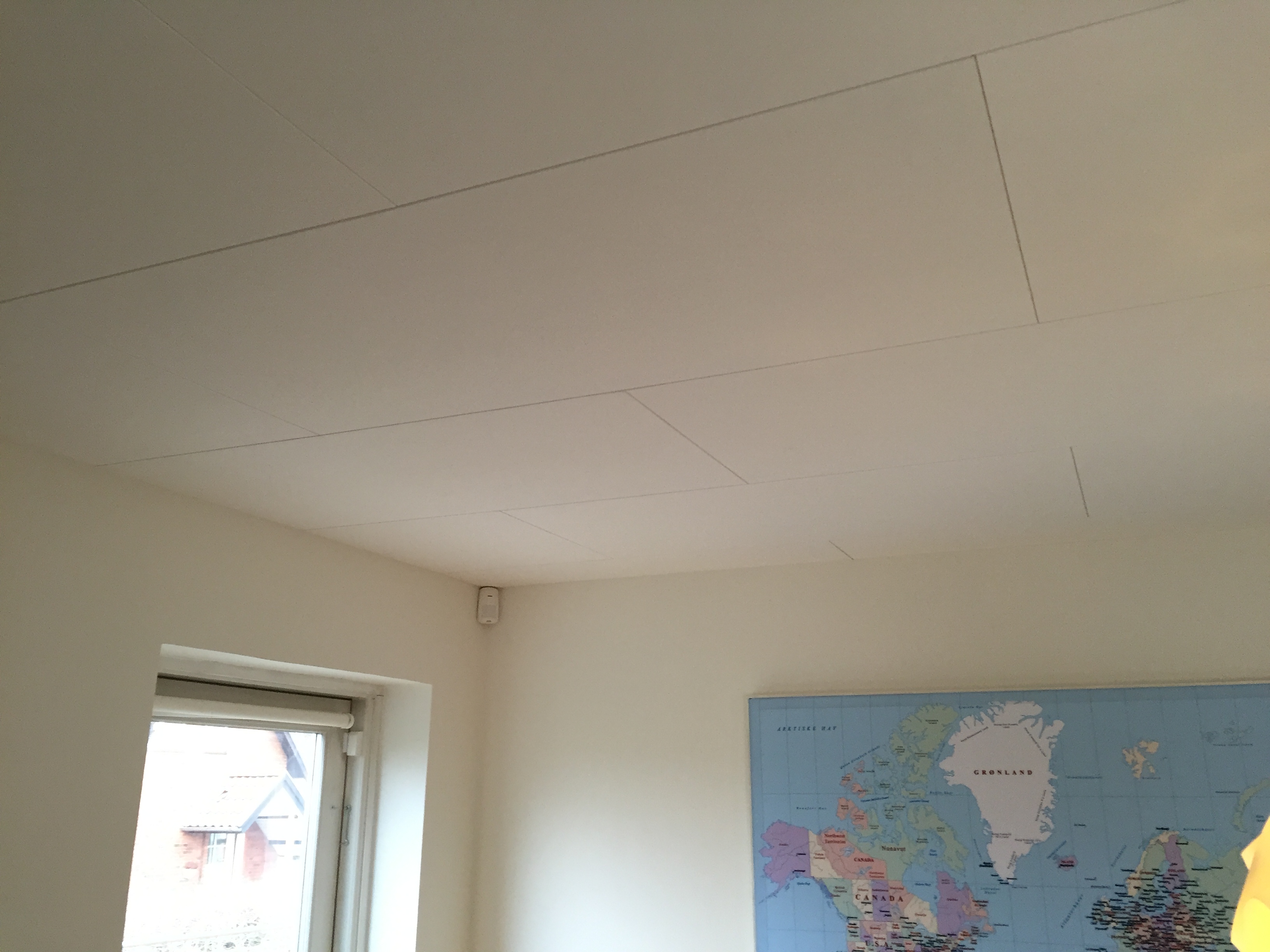 Bei Verwendung von Absorbern mit 40 mm Stärke sollte etwa 40-60 % der Grundfläche des Raumes auf der Decke und eventuell auf der Wand verteilt werden, je nach Anwendung des Raumes und seiner akustischen Beschaffenheit.